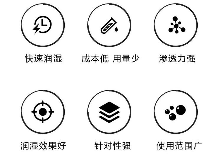 非離子型潤(rùn)濕劑有多種類型,其中包括:脂肪醇類脂肪酸類聚氧乙烯醇類聚氧乙烯醚類硅油類脂肪醇類:這類潤(rùn)濕劑包括月桂醇、硬脂醇、甘油等,它們具有良好的潤(rùn)濕性能,可用于處理塑料、金屬、玻璃等各種材料表面,提高其濕潤(rùn)性和潤(rùn)滑性。此外,它們還具有較低的刺激性,對(duì)皮膚和眼睛的刺激性較小,因此被廣泛應(yīng)用于化妝品、洗滌劑等領(lǐng)域。脂肪酸類:這類潤(rùn)濕劑主要包括一些高級(jí)脂肪酸,如硬